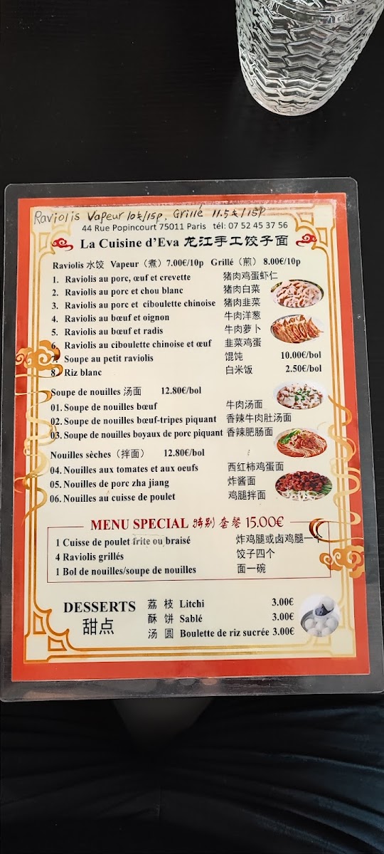 Nestled on Rue Popincourt in Paris, LA CUISINE D'EVA offers a delightful journey into authentic Chinese flavors. Specializing in hand-made dumplings and noodles, each dish showcases a commitment to freshness and quality. The menu, starting at an affordable €15, features generous portions that consistently impress diners.